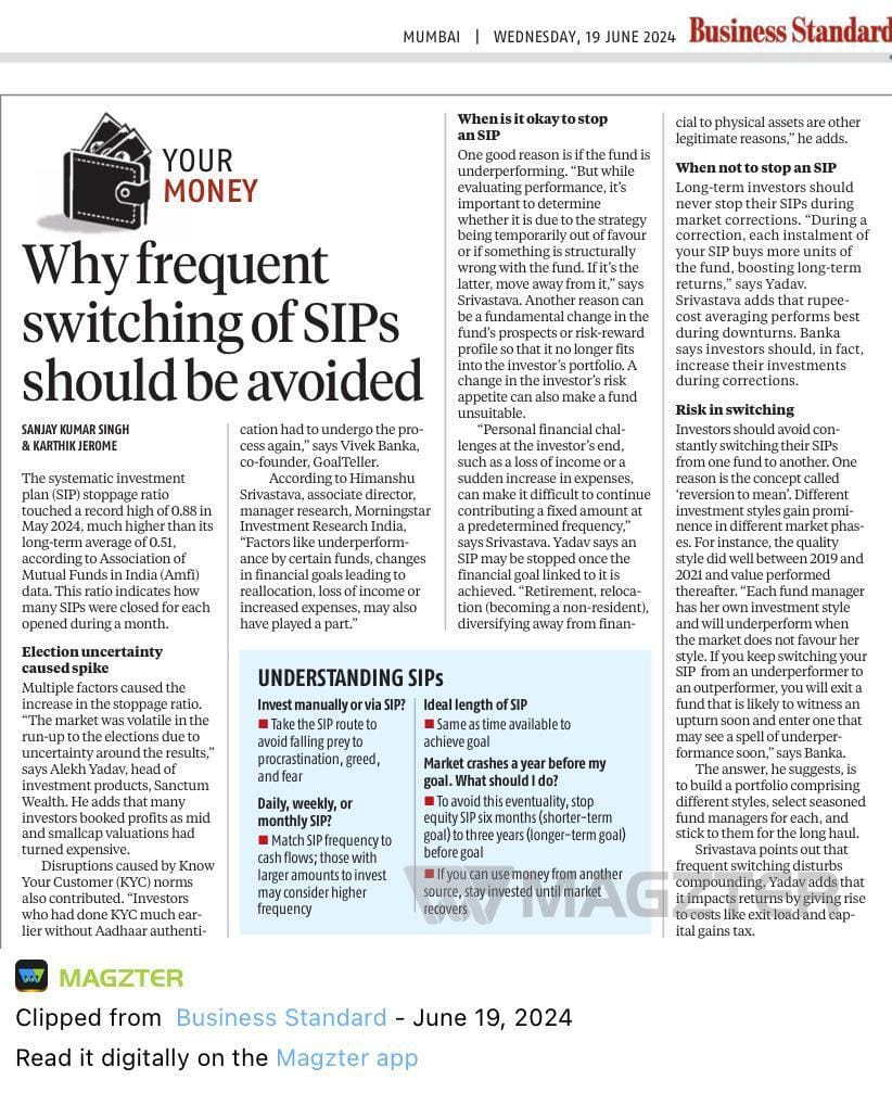 NOTE – This is for STP’s and we surely don’t recommend any stoppage or pause of SIP’s at all (Our founder’s thoughts in the Business Standard on SIP’s below)