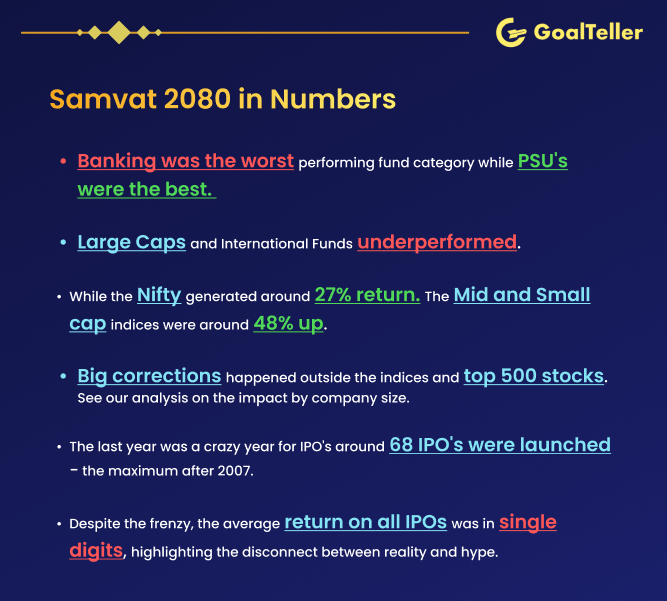 Samvat 2080: A Deep Dive, Samvat 2081 : Outlook and recommendations (Nifty, Funds and Stocks)